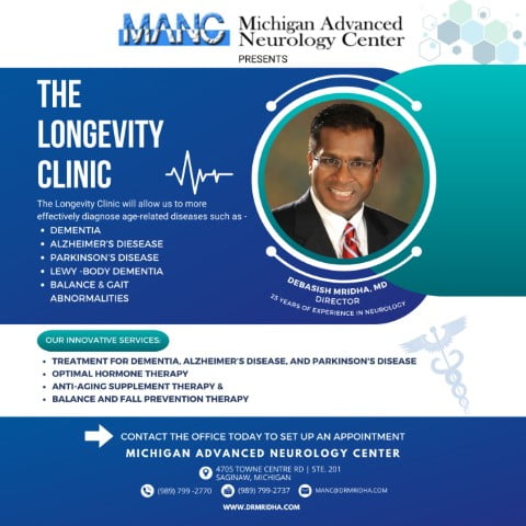 We are pleased to announce that Michigan Advanced Neurology Center (MANC) is opening a Longevity Clinic in our office to reduce the impact of age-related diseases and assist patients in optimizing their health to live a longer, healthier life.